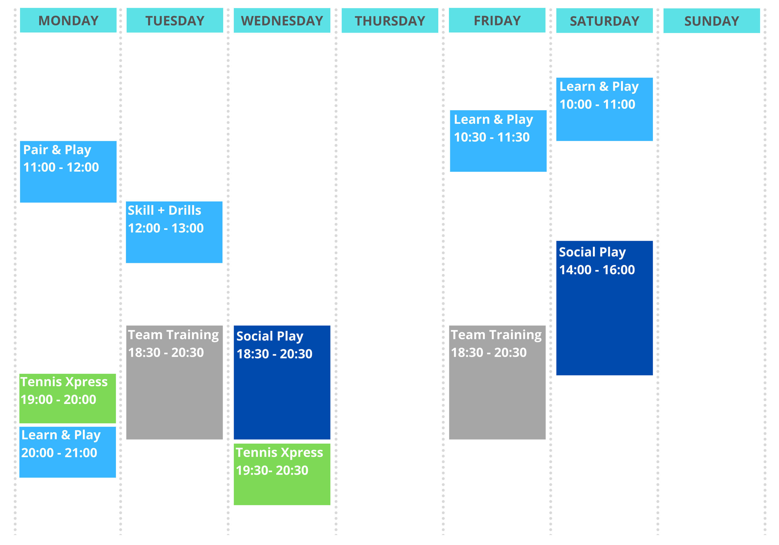 The PLAY programme has been designed for those who have completed the LEARN programme and are looking for regular weekly coaching or general social play at the club. It comprises of Learn & Play, Pair & Play and Social Play.