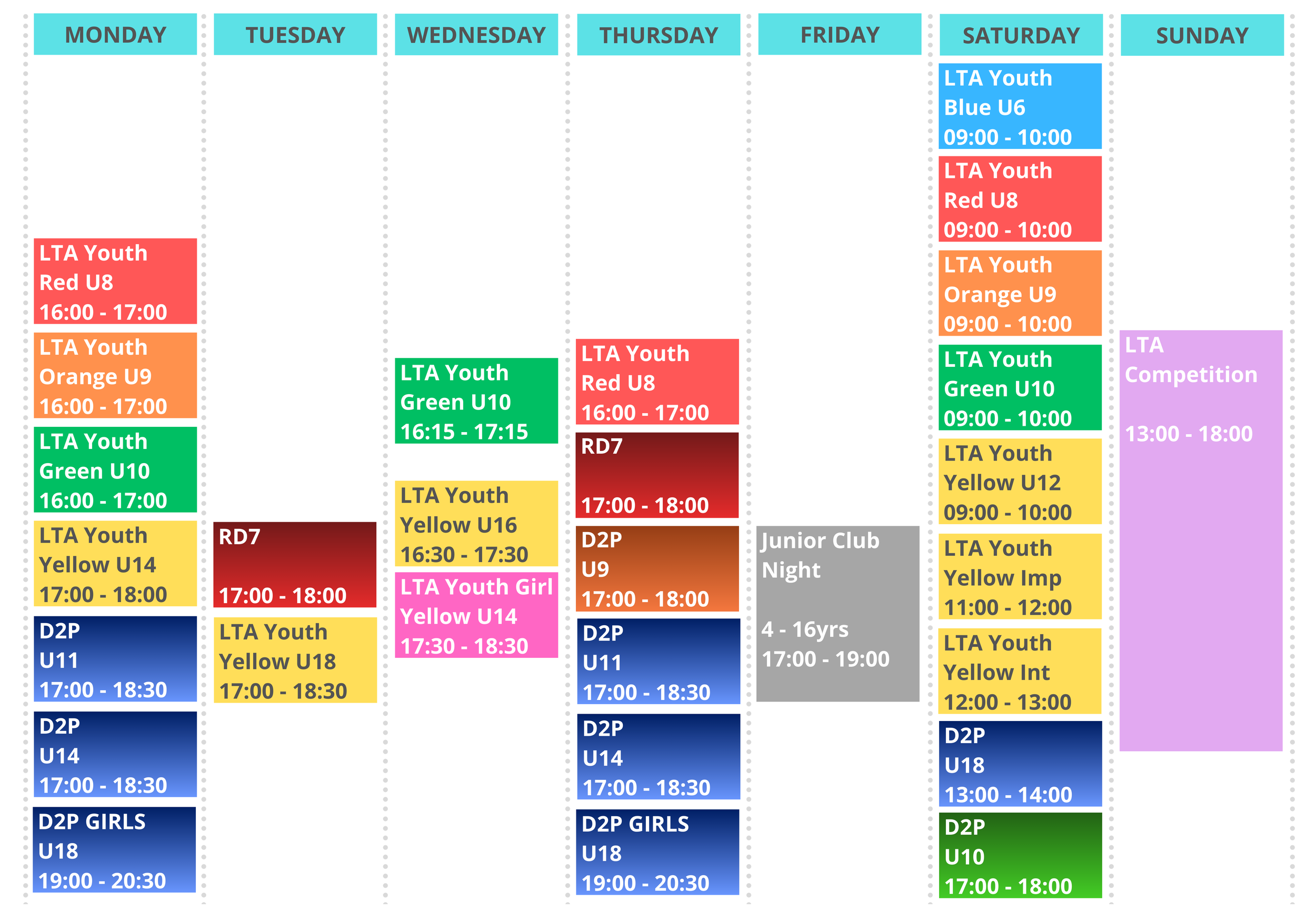 The Development 2 Performance programme is aimed at juniors aged 8 - 14 years, aiming towards a competitive future in tennis, playing regularly in LTA Graded tournaments, working towards county level and possible future in a regional or national LTA academies.